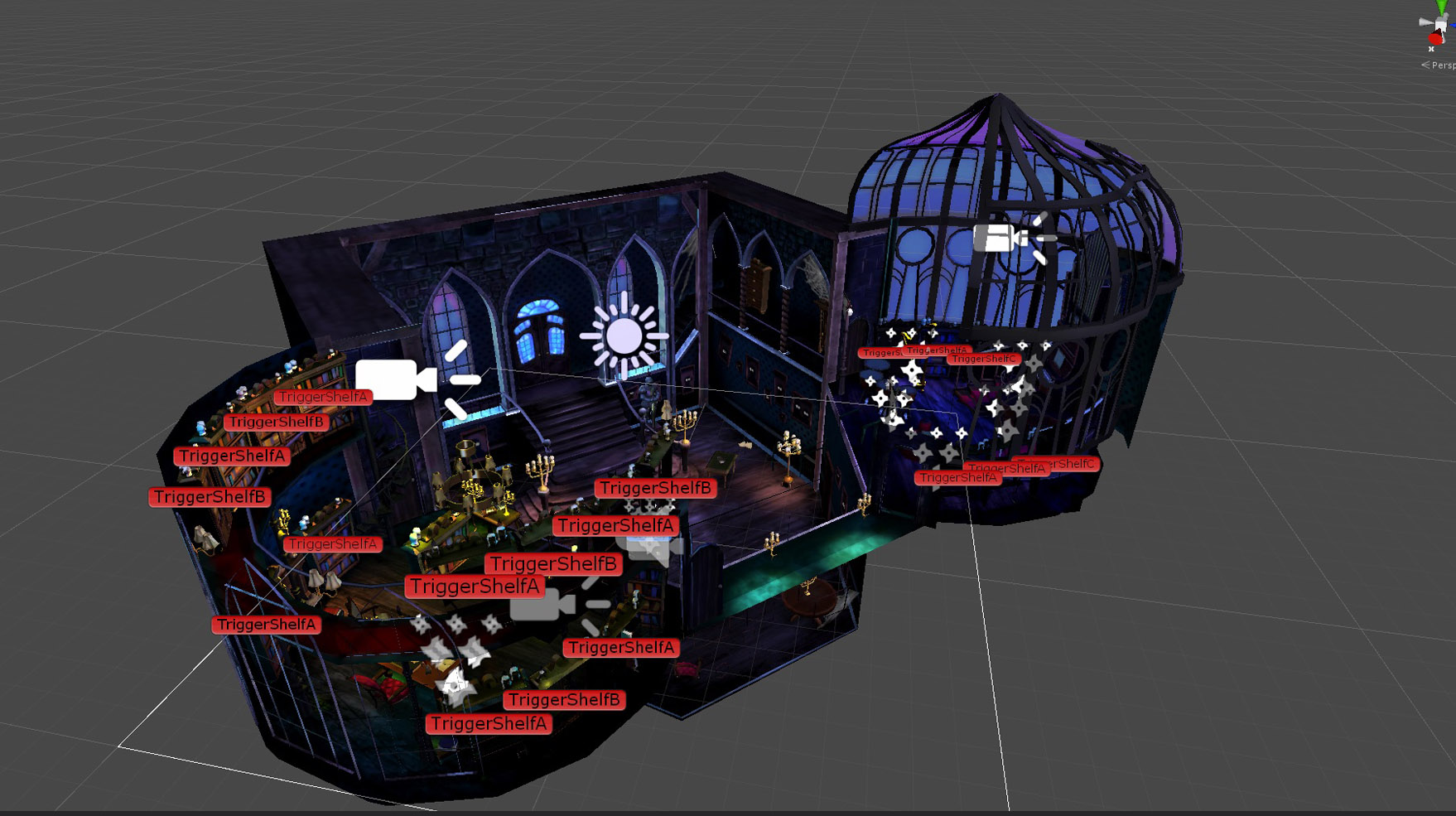 We also did all the asset creation, texturing modeling interaction animations, fx, particles, greyboxing animation, lighthing and character setup.