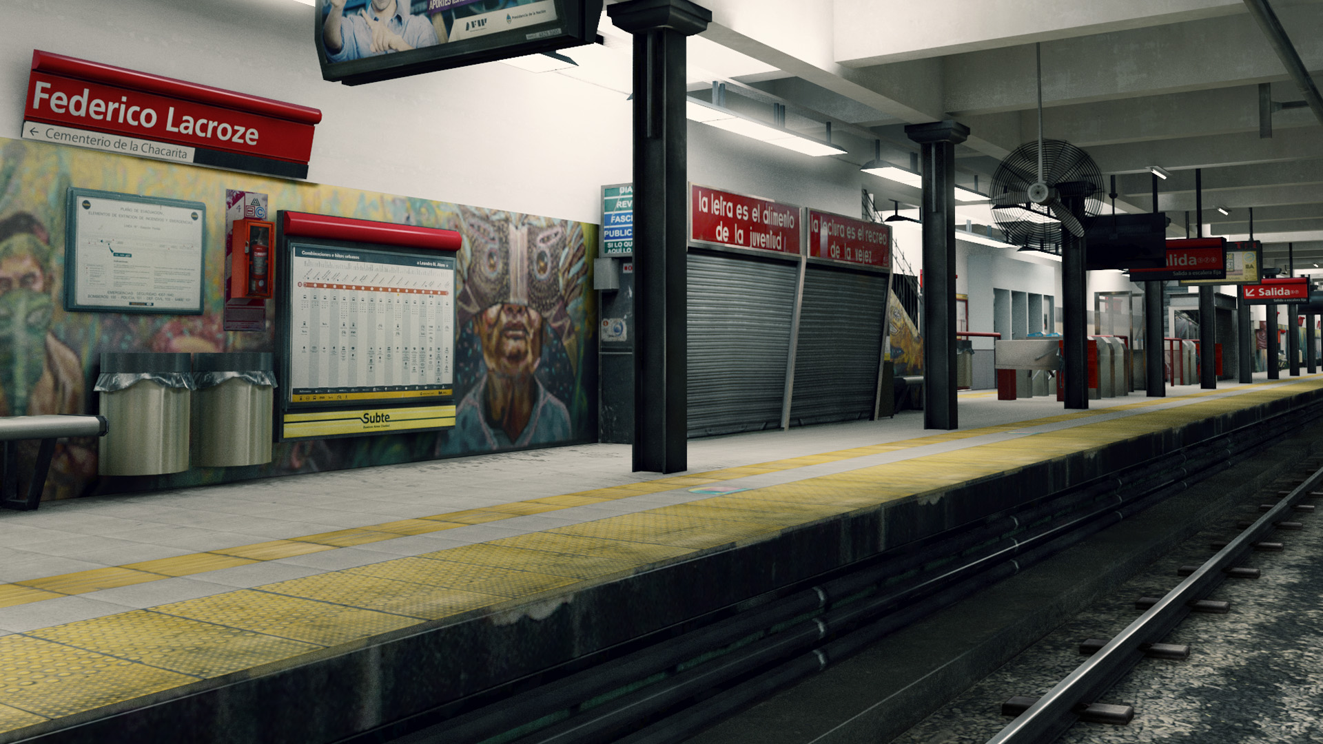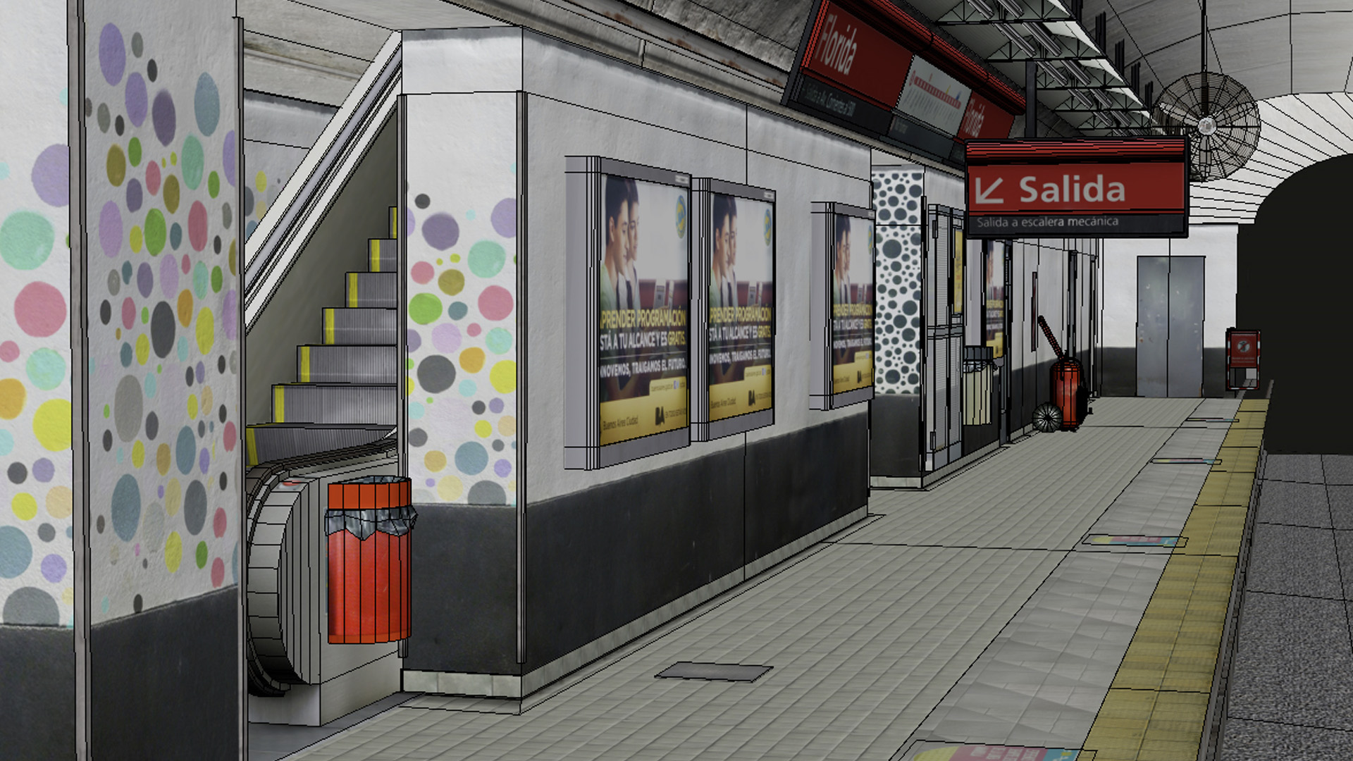 Our team worked in the Media Lab' Subway Simulator visual part. From the photographic research of all the real metro system of Buenos Aires to the modeling texturing of it as well.
