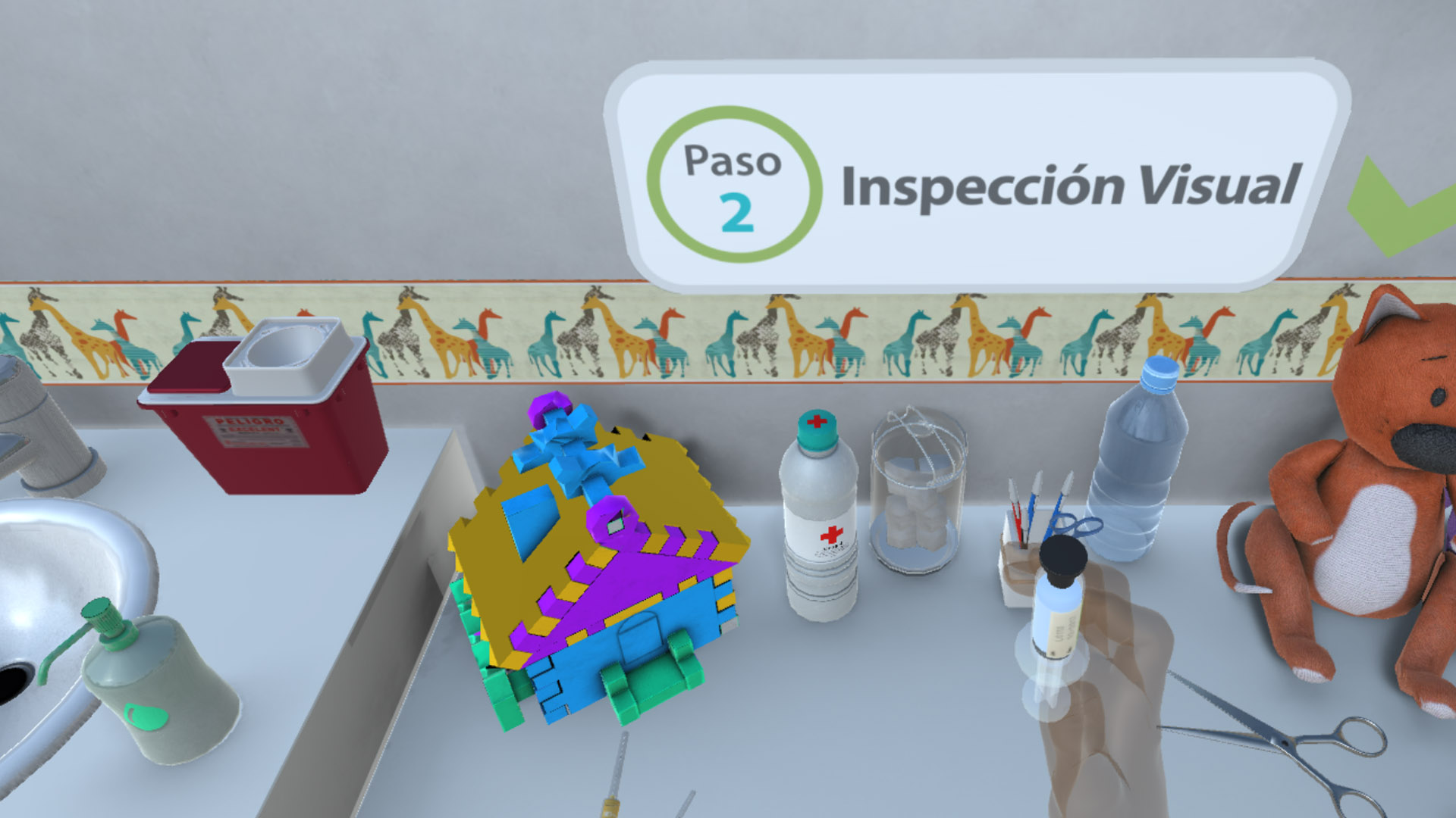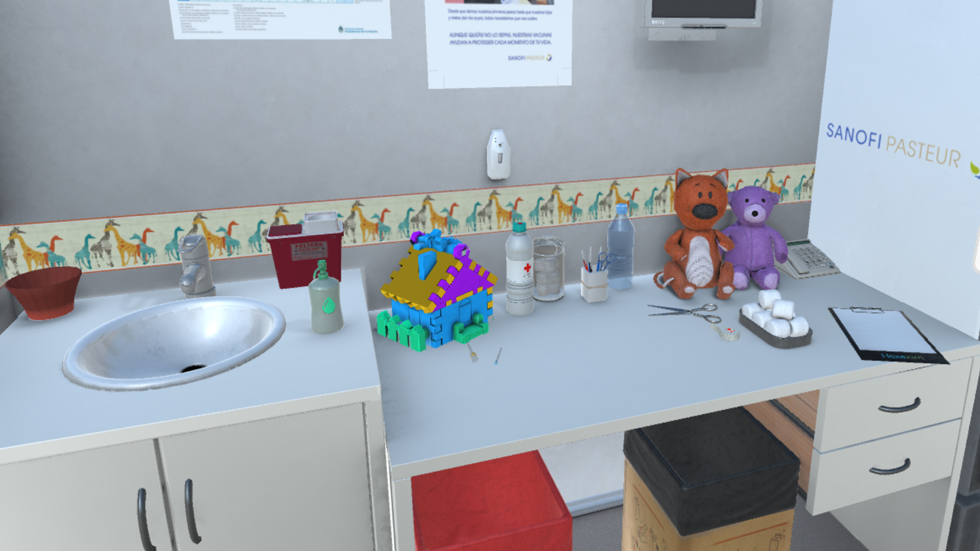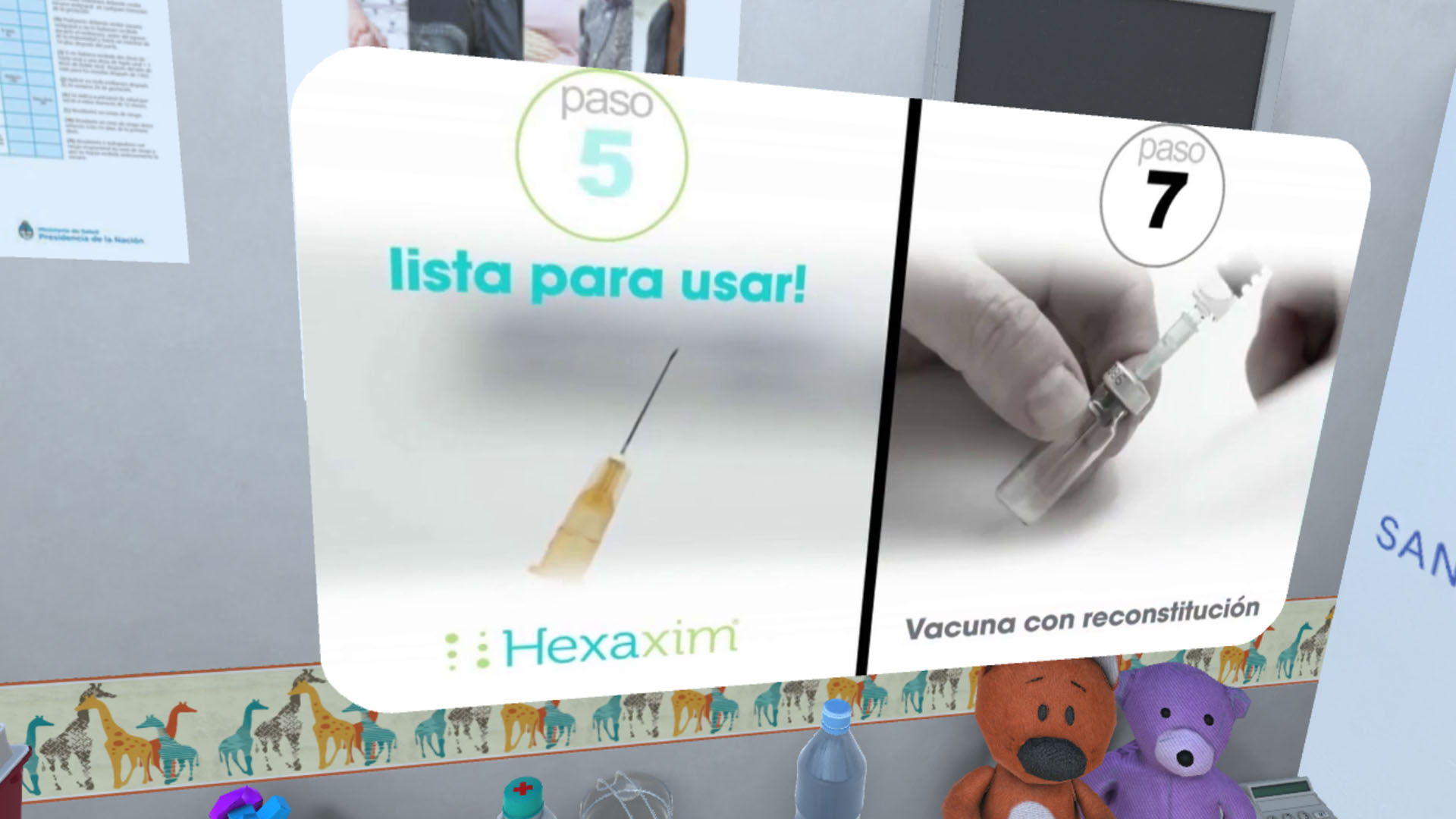 The VR Experience consist in a series of interactive steps to show the benefits of using these vaccines vs the competition. The user interacts with the environment pointing its sight through the 6 steps of the Hexaxim vaccine preparation, showing how simple and fast it is.